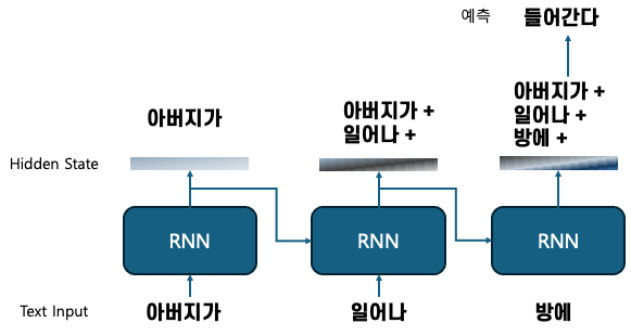 RNN의 핵심은 모델이 하나의 Hidden State에 입력된 텍스트의 모든 맥락을 압축한다는 것입니다. 즉, 정보가 순차적으로 누적되면서 텍스트의 맥락이 하나의 상태로 압축됩니다. 이 방식은 여러 단어로 구성된 맥락을 하나의 State로 압축하므로 메모리 사용이 효율적입니다. 또한 다음 단어 예측 시 현재의 State와 입력 단어만으로 처리할 수 있어 생성 속도가 빠르다는 장점이 있습니다.