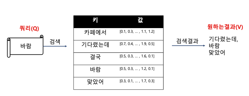단어 관련성 판단 방식을 모방하기위한 쿼리, 키, 값