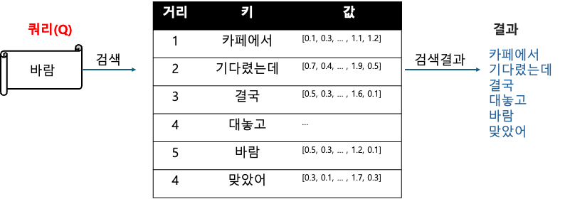 - 여기서 검색하는 단어가 Q(쿼리)고,