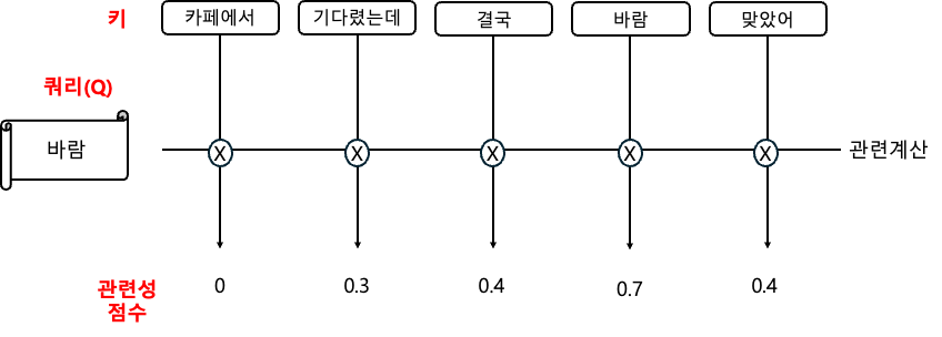 쿼리, 키, 값은 보통 정보검색(Information Retrival)에서 주로 사용되는 변수입니다. 우리가 구글, 네이버와 같은 포털에서 검색할 때 단어를 입력하고 포털사이트에서는 단어를 통해 검색 단어와 의미가 유사한 문서들의 특징값을 도출해 문서를 찾고, 그 문서를 보여줍니다.