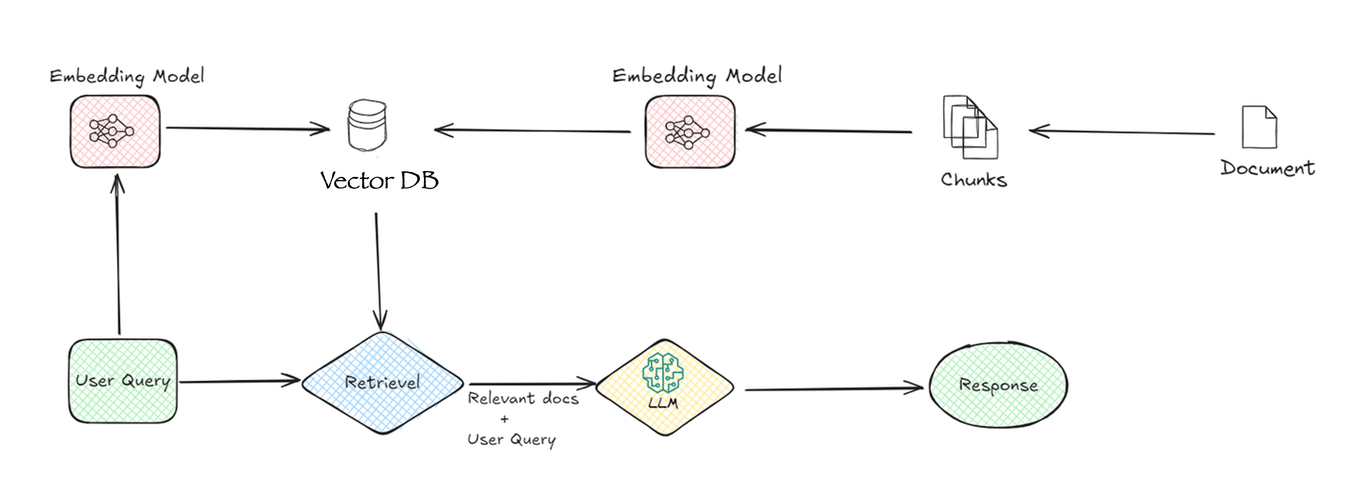 마지막 단계에서 시스템은 LLM이 처리한 정보를 바탕으로 응답을 생성합니다. 생성된 응답은 사용자가 찾고자 한 정보를 명확하고 간결하게 전달합니다.이러한 질문에서 응답까지의 데이터 흐름을 통해 Naive RAG 시스템의 각 구성 요소가 정확하고 관련성 높은 정보를 제공하는 데 중요한 역할을 함을 알 수 있습니다.