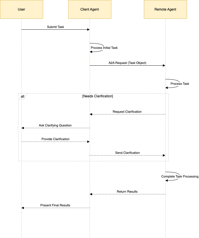 에이전트 간 통신 오류를 일관성 있게 처리하기 위해, 오류 형식이 표준화되어 있어 디버깅이 용이합니다. - 명확성 요청(Clarification Requests)