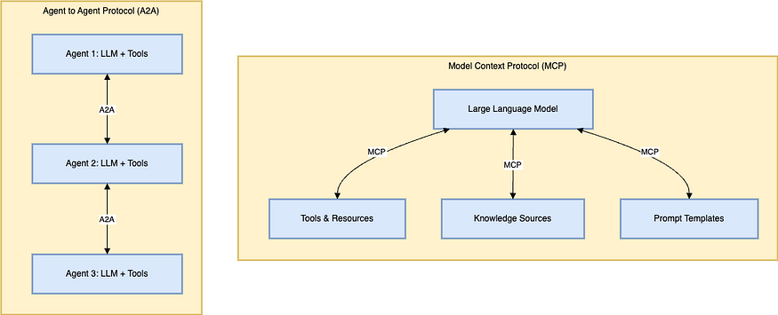 | 초점 | LLM과 도구(API, DB 등)의 연결 | 완전한 에이전트(LLM+도구) 간 통신 |